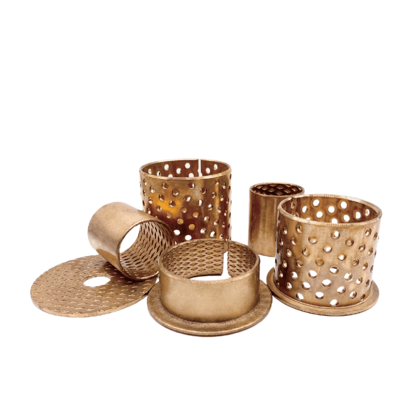 This is a thin wall wrapped bushing. It is suitable for a cost sensitive solution while the tolerance requirement is not critical. The through hole design is suitable for oil lubricating. The fast oil film establishment reduces the adhesive wearing of the components. The ID of the bushing is machinable after assembling. Bronze alloy provides good corrosion resistance and thermal conductivity feature. It is suitable for middle to low load and low speed application and periodically light oil lubricating is recommended.
