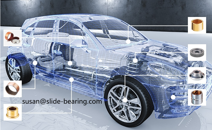Special shaft sleeves for tensioners, special shaft sleeves for shock absorbers, shock absorber guide assemblies and pistons, transmission shaft sleeves and gaskets, seat adjustment system shaft sleeves, door hinges and trunk hinges shaft sleeves, wiper shaft sleeves, air conditioning compressor shaft sleeves, starter motor shaft sleeves, power steering pump shaft sleeves, steering system bearing shells, brake system and pedal assembly shaft sleeves, etc.